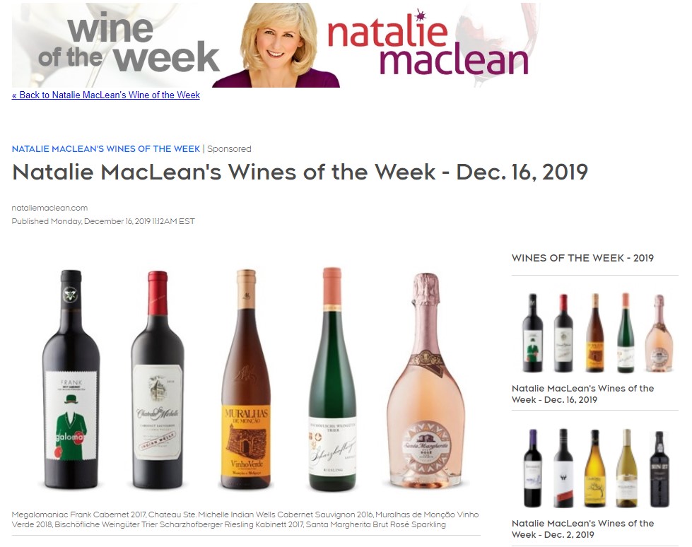 Frank Earns a 90 From Natalie Maclean